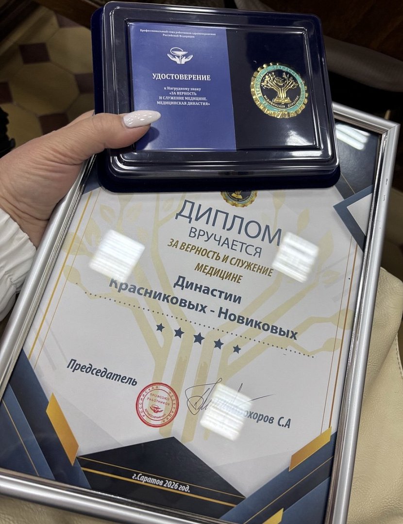 В областной организации профсоюзов работников здравоохранения чествовали медицинские династии региона. Наш район не остался в стороне, нагрудный знак и диплом «За верность и служение медицине» из рук еепредседателя Сергея Александровича Прохоровна получили наши земляки.Династия Красниковых - Новиковых насчитывает более 300 лет. Два средних медработника, семь врачей разных специальностей, два кандидата медицинских наук - и это не предел…