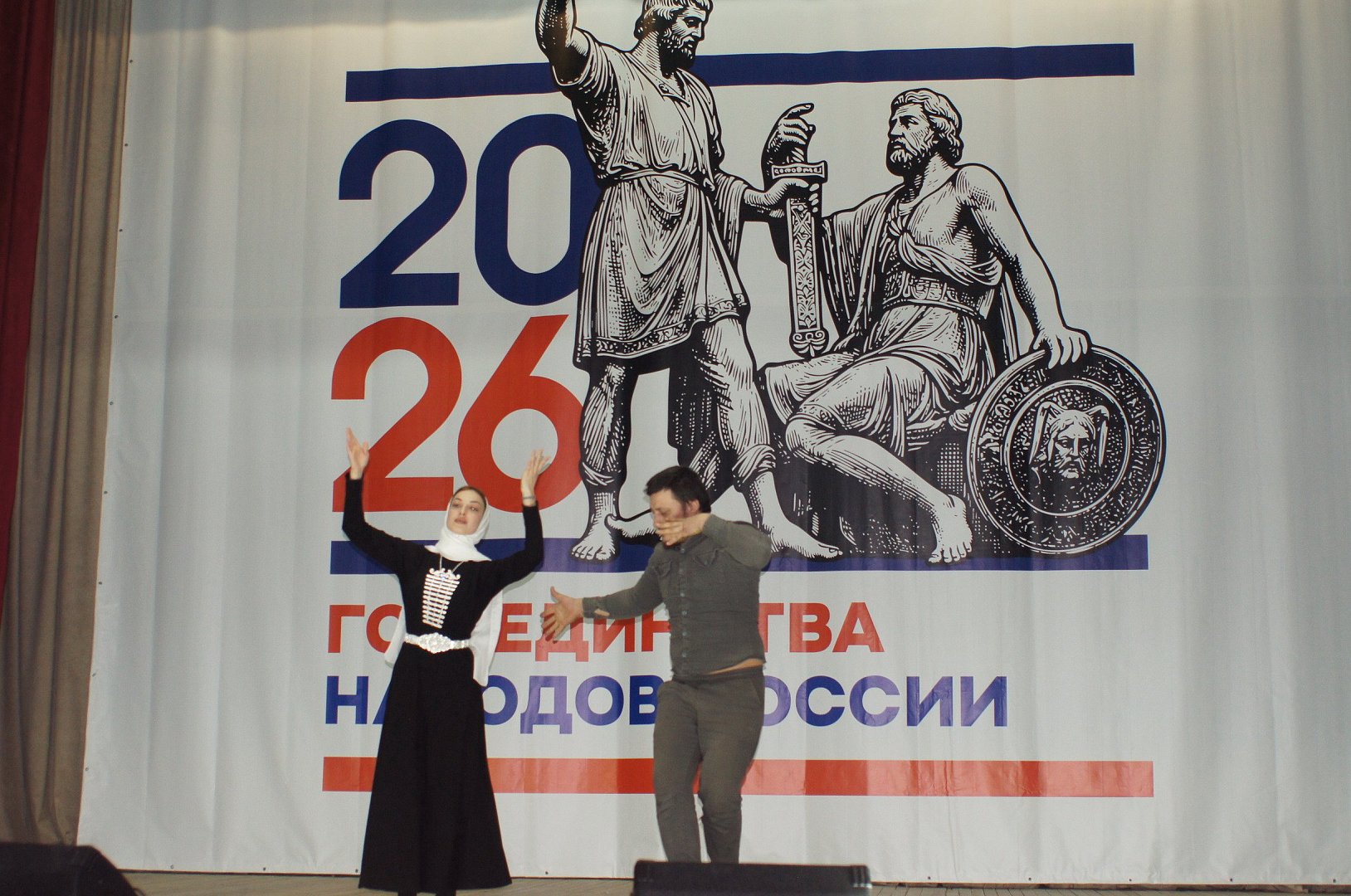 Ведущая мероприятия А. Масленникова отметила: «Уважаемые друзья, сегодня особенный день. День, когда мы открываем Год единства народов России! Год, который призван напомнить нам о нашей общей истории, о наших общих ценностях и о той нерушимой силе, которая рождается из нашего многообразия. Россия - это огромная страна, где бок о бок живут сотни народов, каждый со своей уникальной культурой, языком и традициями. И именно в этом многообразии - наша сила, наша гордость и наше будущее. Сегодня мы собрались здесь, чтобы отпраздновать это единство, чтобы почувствовать себя частью большой и дружной семьи - семьи народов России!»