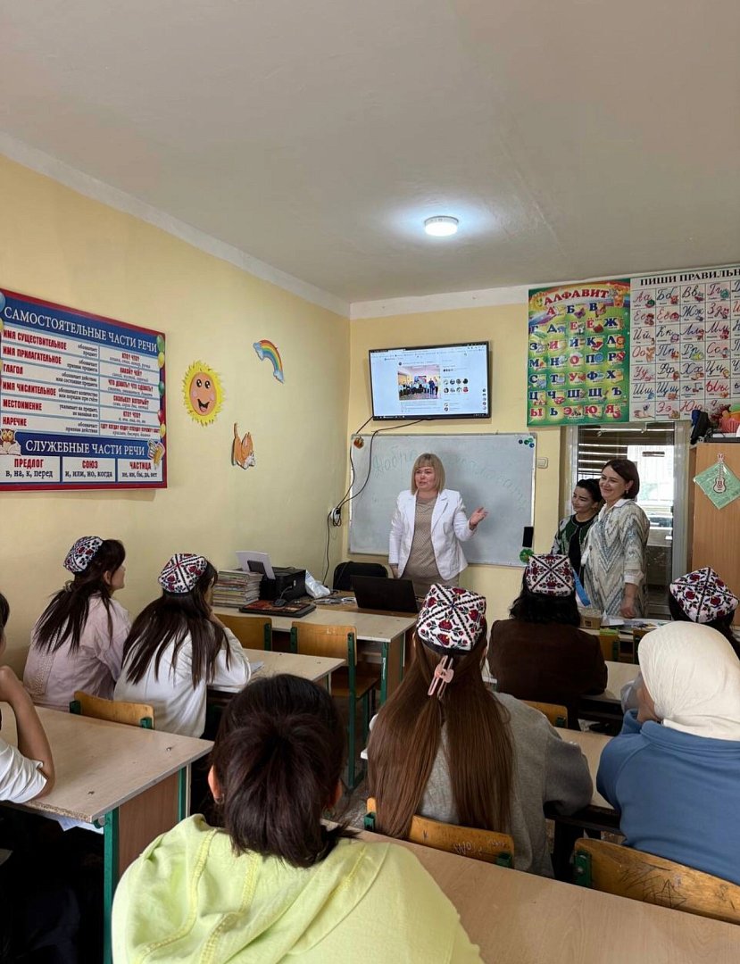 Советник директора по воспитанию МОУ «СОШ с.Елшанка» Шумилова Любовь Валентиновна посетила дружественную страну ближнего зарубежья - Узбекистан. Любовь Валентиновна побывала в школе № 61 Бухарской области города Гиждувана, где провела внеурочное занятие «Дружба народов». Во время мероприятия Любовь Валентиновна рассказала о своём районе, школе, о проектах, которые проводятся в родной школе, а именно: «Навигаторы детства», «Движение Первых», «Орлята России» и многих других. В рассказе Любови Валентиновны ребят больше всего заинтересовала волонтерская деятельность, направленная на поддержку братьев наших меньших.