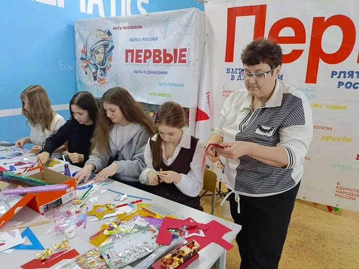 В МОУ «СОШ с. Воскресенское» работники РДК провели мастер-класс «Звезда - Защитнику Отечества». Участницы не только сделали оригинальные «сладкие» подарки своими руками, но и прикоснулись к истории. Исторический экскурс начался с рассказа о Георгии Победоносце, чей образ веками защищал русскую землю. Девочки узнали о том, как появился герб Москвы, об учреждении ордена Святого Георгия и Георгиевского креста. В беседе мы вспомнили подвиг экипажа крейсера «Варяг», героизм защитников Сталинграда и воинов, дошедших до Берлина в 1945-м.