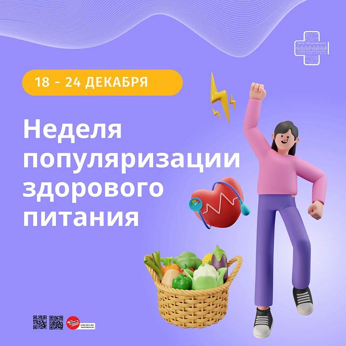 В России Неделя популяризации здорового питанияЗдоровое питание на протяжении всей жизни - важнейший элемент сохранения и укрепления здоровья нынешних и будущих поколений, непременное условие достижения активного долголетия. Здоровое питание обеспечивает рост, оптимальное развитие, полноценную жизнедеятельность, способствует укреплению здоровья и профилактике неинфекционных заболеваний (НИЗ), включая диабет, болезни сердца, инсульт и рак.